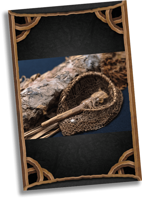 Otro elemento utilizado eran los chinguillos, que eran redes de material vegetal en forma de bolsos para transportar los alimentos recolectados.